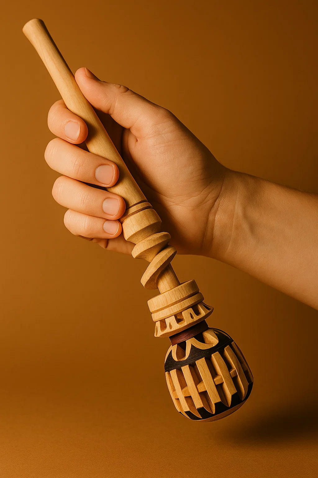 Molinillo de madera tallado a mano para batir chocolate oaxaqueño y lograr la espuma perfecta, tradición y calidad en cada detalle.